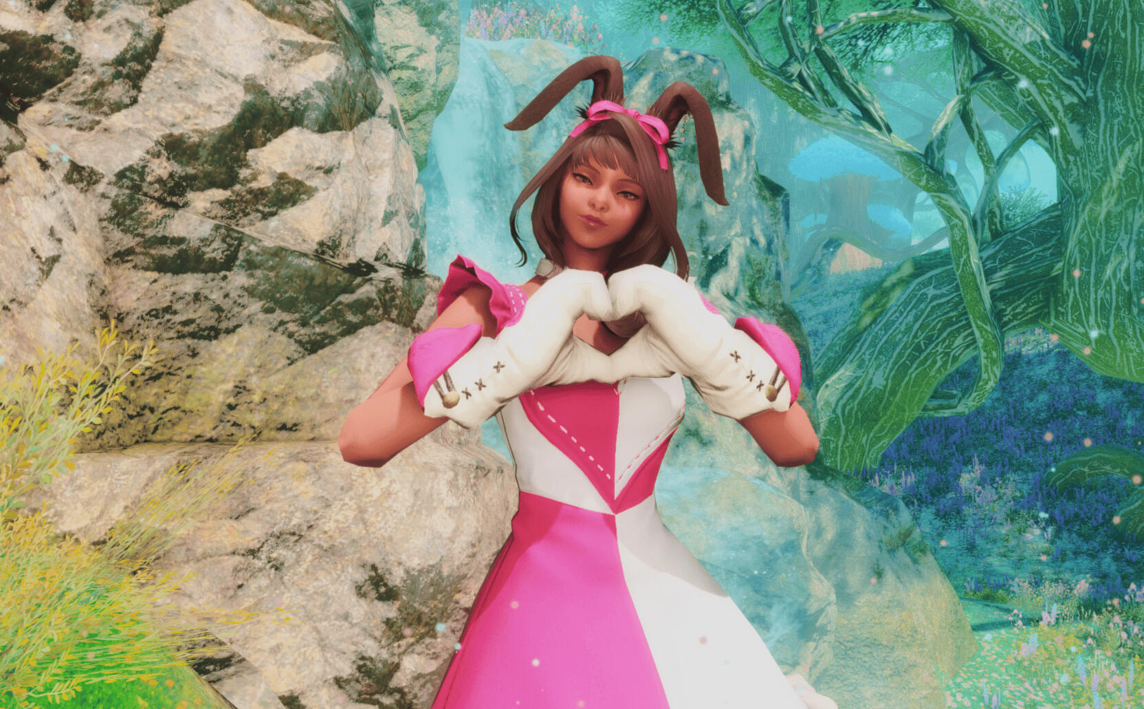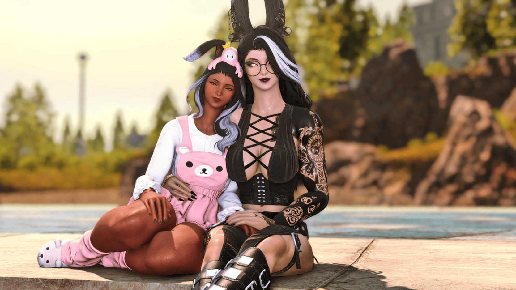 Born beneath the emerald canopy of the Raktika Greatwood, Charlotte’s life began in mystery. No one knew her true parents, nor from where they came — only that she was found as an infant, wrapped in faded cloth and left at the roots of an ancient tree. Fate took pity on her that day, for a kind-hearted Viera couple discovered the child and took her in as their own.For a time, her life was gentle and quiet. She grew among the whispering trees, learning to read the forest’s moods — when the air would turn heavy with rain, when the beasts stirred, when the spirits sang. Yet tragedy came early. When Charlotte was still young, her adoptive mother disappeared without a word, leaving only a sense of emptiness in her wake. From then on, Charlotte was raised only by her father, Heya, a skilled hunter who taught her how to track, move silently, and respect the laws of the Greatwood.As Charlotte grew, she began to study under several Raktikan teachers who specialized in the forest’s crafts and traditions. Though she never traveled to distant cities like Sharlayan, the Greatwood itself became her academy. The wise matriarchs of her village taught her weaving, cooking, and herbal alchemy, while the scholars of Fanow and Slitherbough shared with her the lore of the land and the flow of aether that pulsed beneath its roots. Under Wyrtus’s guidance and the forest’s embrace, Charlotte learned both intellect and instinct — the perfect balance between scholar and wanderer.Yet even with her hands and mind constantly at work, a quiet yearning lived within her heart — a call to discover her origins, and to understand why her mother had left. That restlessness eventually drew her beyond the Greatwood’s borders, where her story would take a new turn.After completing her studies, Charlotte began to wander — traveling across Eorzea to learn from its people and rediscover her roots. It was during one such journey, passing through the verdant woods near Gridania, that fate intervened once again. She met him. A guy with some kind of "Legend" title above his head. His name? Sayo Aisaka. A skilled craftsman, fisherman, hunter and adventurer, admired Charlotte’s gentle wisdom and her unyielding curiosity. In turn, she found in him the warmth and stability she had long thought lost. Their connection grew with each passing moon — forged through shared travels, laughter, and the mutual understanding of two souls who had both endured solitude. Their meeting was not marked by grand battles or cosmic destiny, but by a simple moment powerful enough to change everything. With complementary spirits, they walk together through the world, balancing reason and emotion, curiosity and stability. Over time, their companionship turned to love and loyalty, and in a simple ceremony beneath the stars of the Twelveswood, Charlotte and Sayo pledged their lives to one another. Two wanderers who became each other’s home.And even though her travels take her far from her Raktika's home, she often whispers to herself the words her father once spoke: “The Woods will always know your name, even when you have forgotten it.”